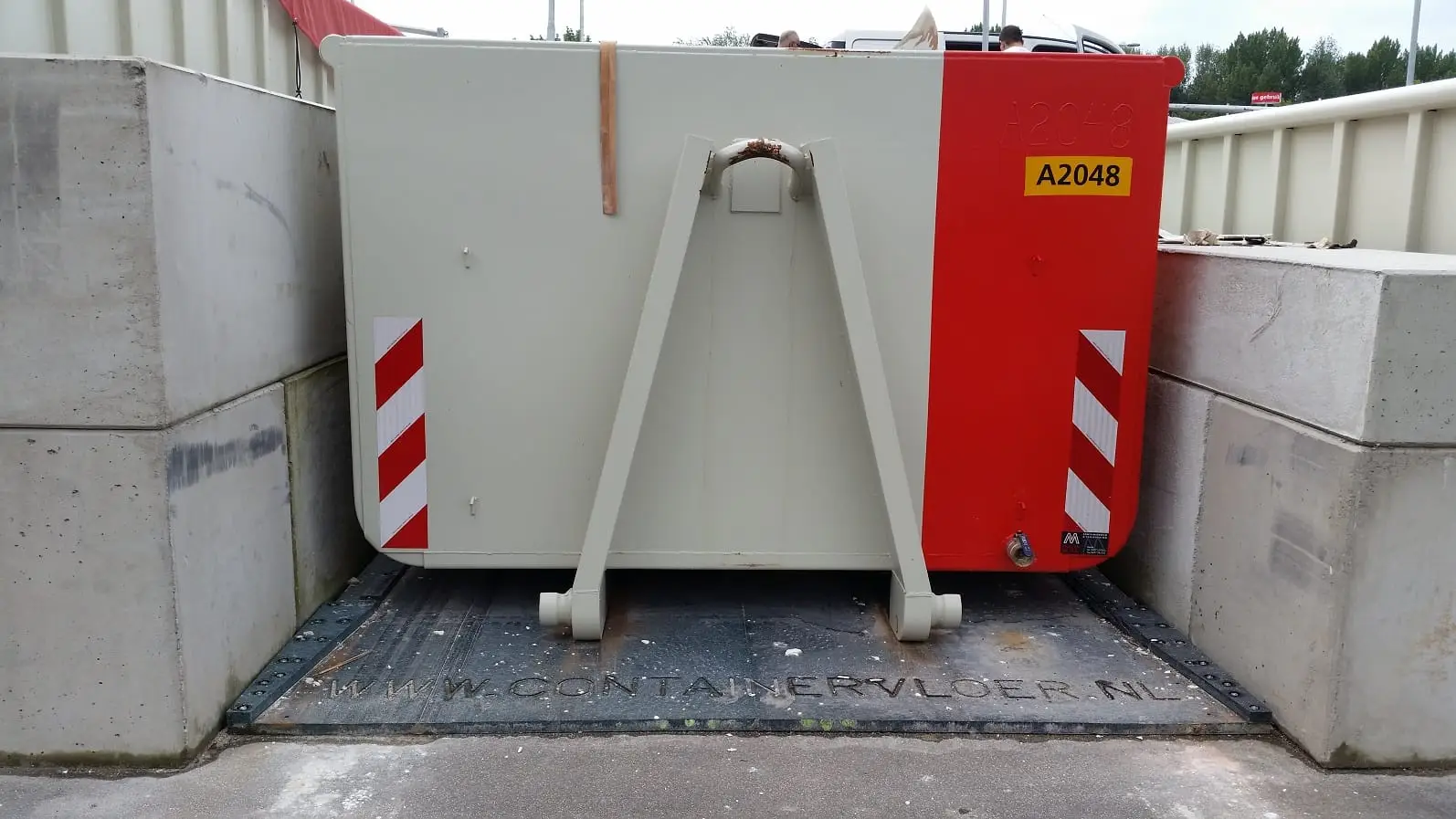 Op deze vloeren plaatst men de vuilcontainers. Deze containers hebben kleine massieve wielen die een grote kracht op de vloer uitoefenen waardoor de kans op beschadigen groot is.