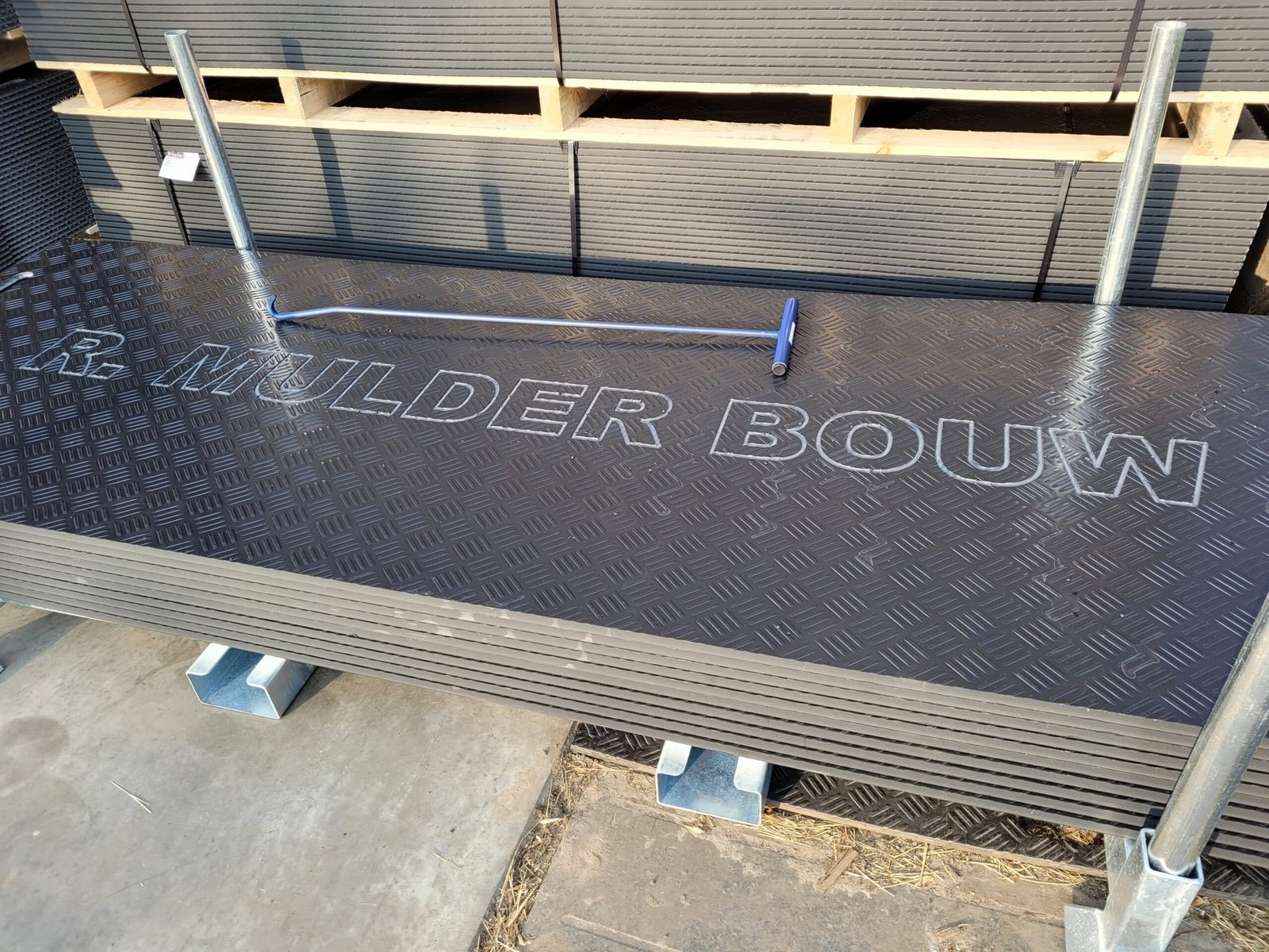 Van zzp’er tot groot aannemer iedereen die wil dat zijn materialen opvallen en herkenbaar blijven, kiest voor rijplaten met logo.