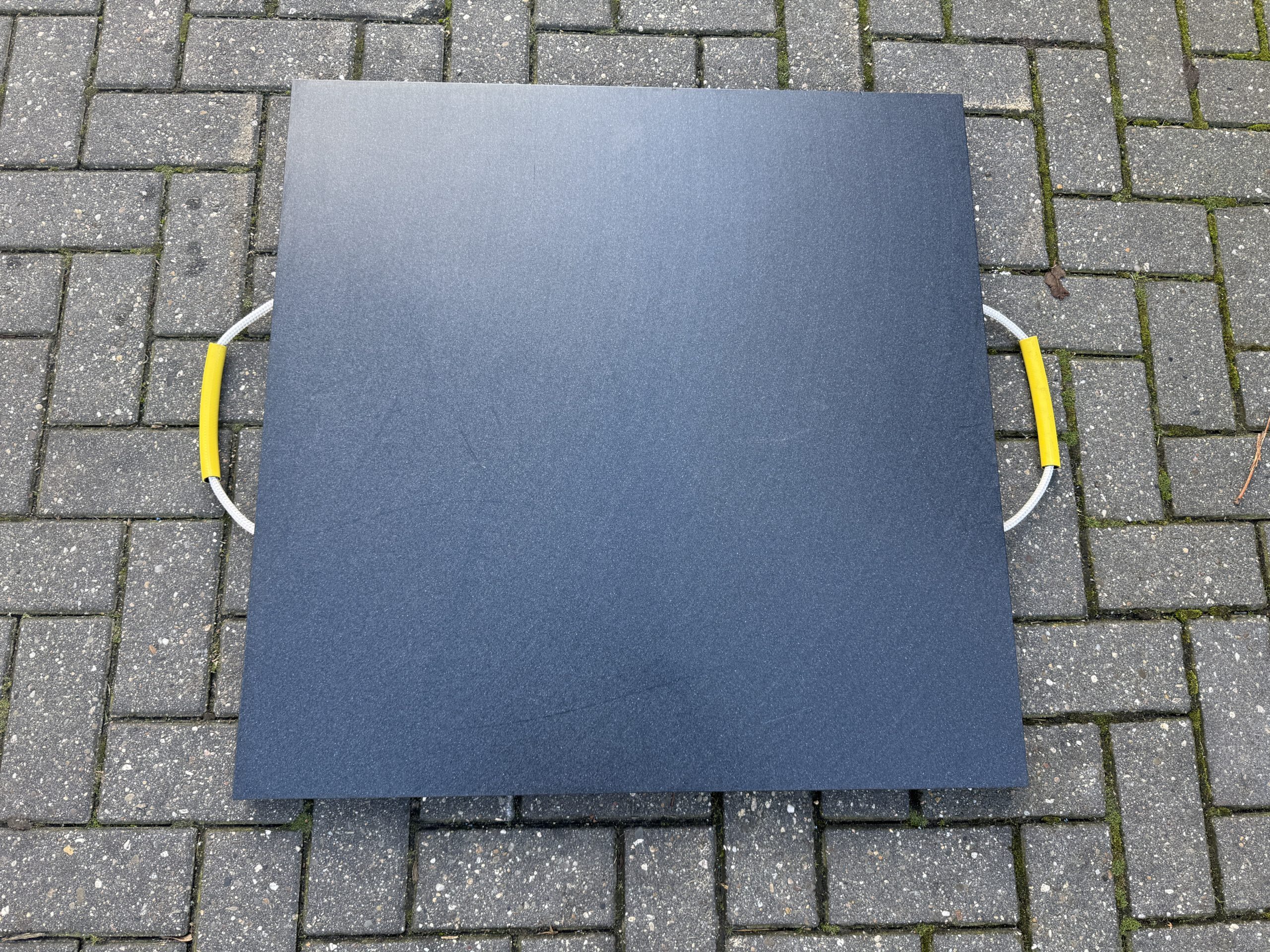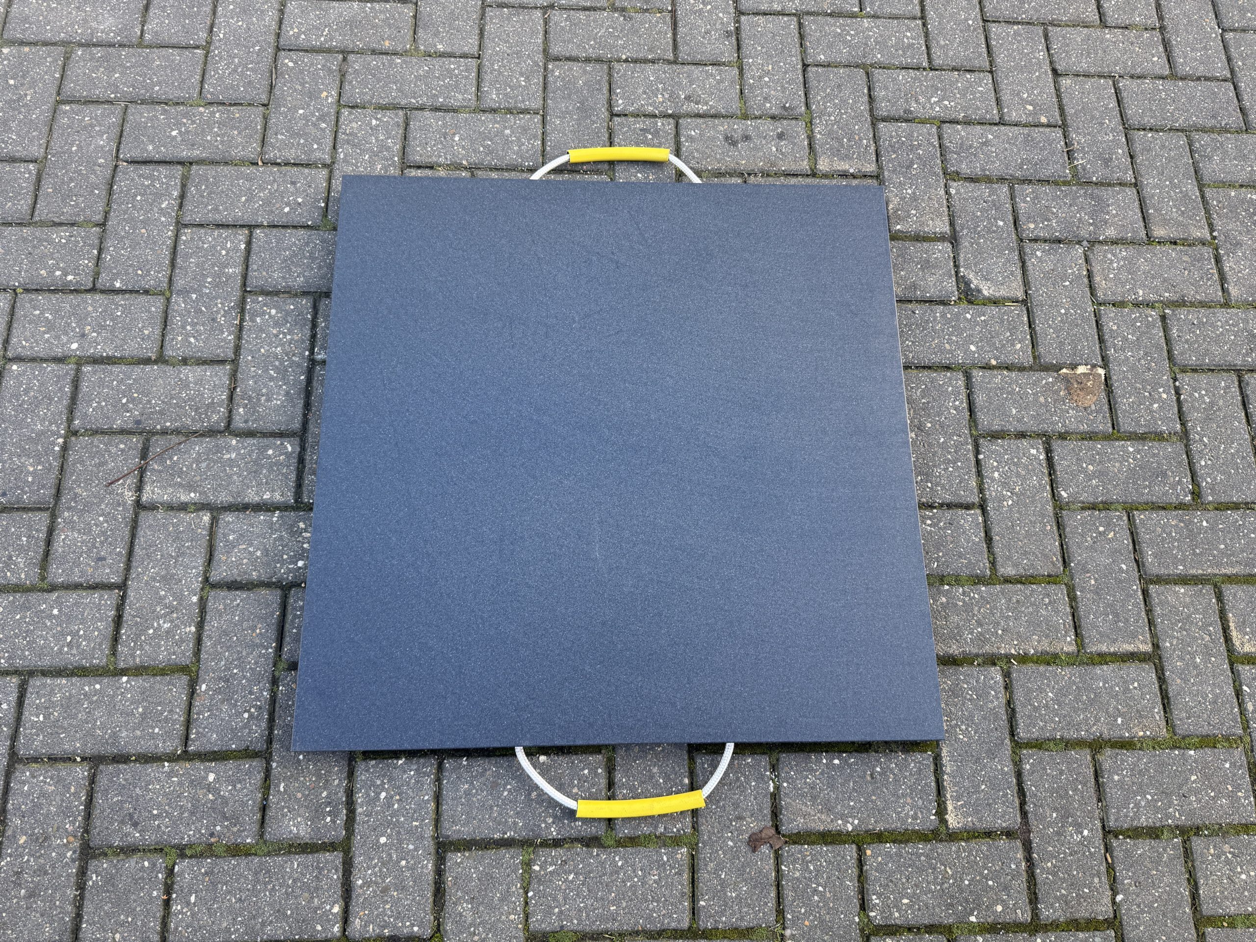 Dankzij het royale formaat van 100×100 cm verdeelt de plaat de belasting perfect over de ondergrond, waardoor schade en wegzakken worden voorkomen.