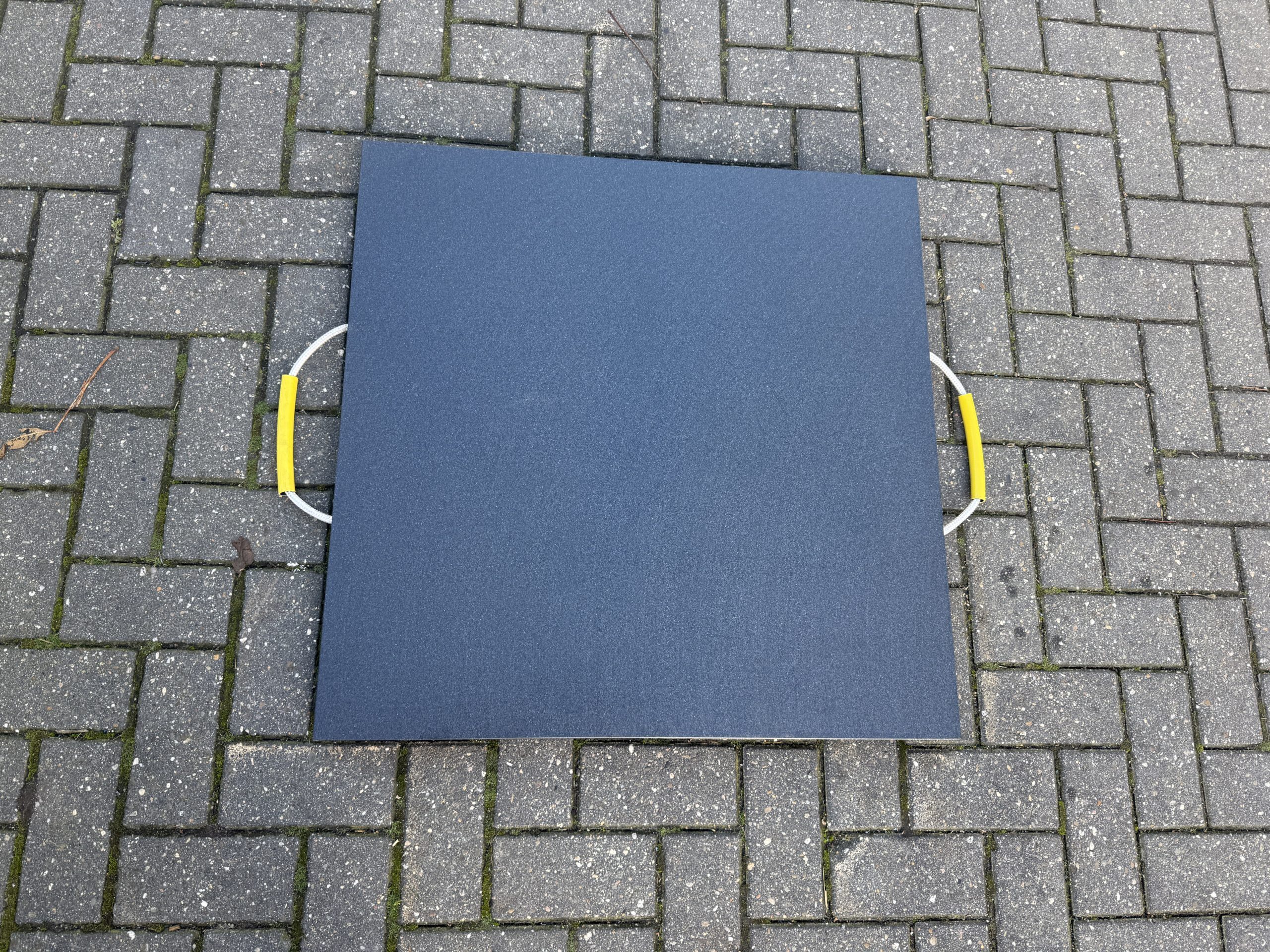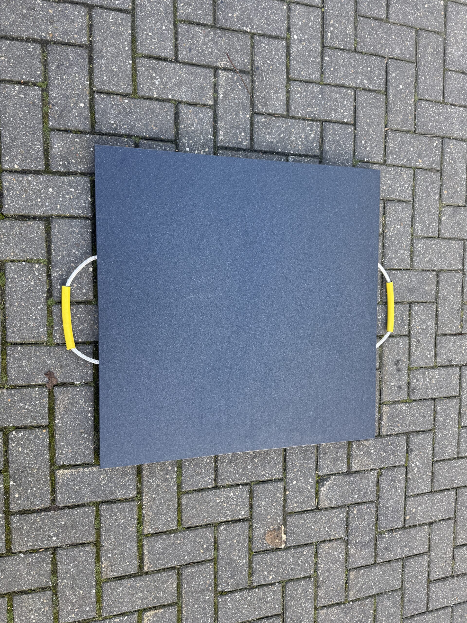Met zijn robuuste formaat van 90×90 cm en een dikte van 6 cm biedt deze stempelplaat een veilige, stevige basis onder kranen, hoogwerkers, vrachtwagens of campers.